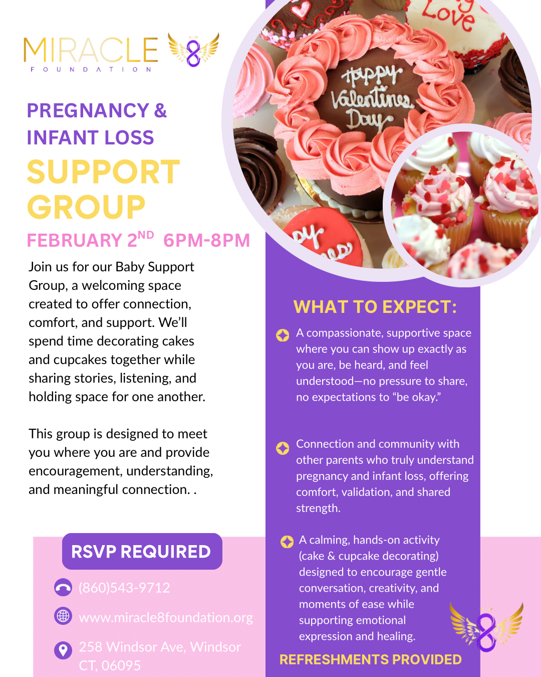 Join us for our Pregnancy & Infant Loss Support Group, a compassionate space for connection, comfort, and community. We’ll decorate cakes and cupcakes together while holding space, sharing gently, and supporting one another.
