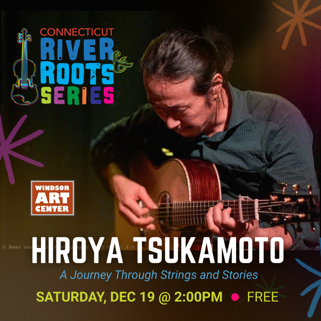 As a part of our CT River & Roots Series, enjoy a free acoustic performance of “A Journey Through Strings and Stories” by Hiroya Tsukamoto, a composer, guitarist and singer-songwriter from Kyoto, Japan, in our gallery at 2:00pm. Bring your family and friends–all are welcome!