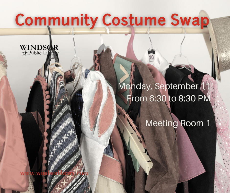 Bring in costumes you no longer want or use to the Windsor Public Library from August 10 to September 10. Items in good condition will be accepted for all age levels.